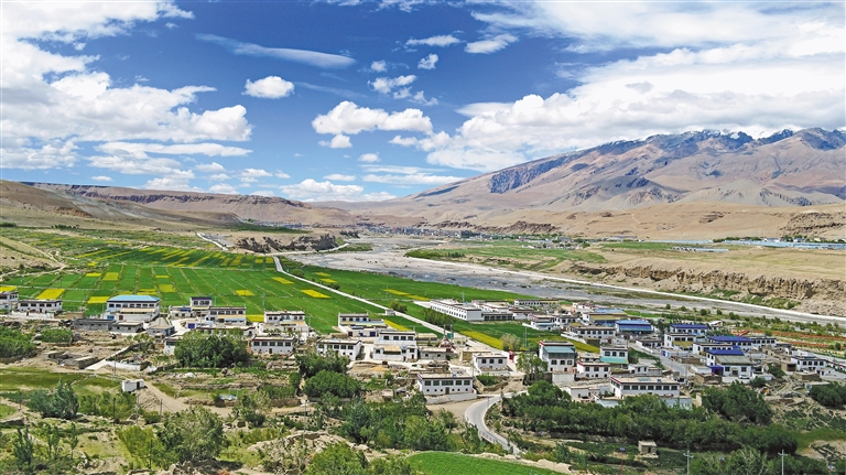 得益于孔雀河谷獨(dú)特的小氣候,阿里地區(qū)普蘭縣普蘭鎮(zhèn)西德村以“嘎瑪古多”(白青稞)產(chǎn)量高、品質(zhì)好而聞名四方。近年來(lái),當(dāng)?shù)爻浞掷眠@一資源稟賦,打造出了全地區(qū)規(guī)模數(shù)一數(shù)二的現(xiàn)代化白青稞加工廠,為西德村乃至全縣鄉(xiāng)村振興注入了澎湃動(dòng)力。圖為西德村一角。記者 洛桑旦增 攝