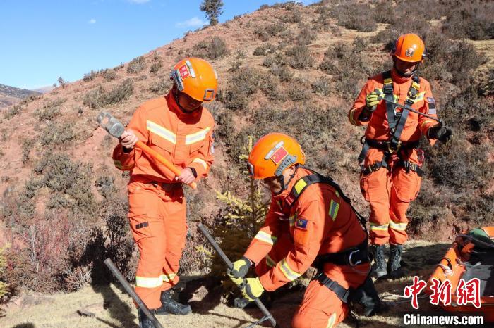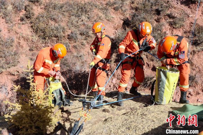 西藏芒康縣平均海拔4300多米,橫斷山脈由北向南縱貫縣境。因特殊地形導(dǎo)致山高谷深、川流密布,加之海拔較高,給各類救援帶來(lái)挑戰(zhàn)。此次訓(xùn)練模擬村民失足掉落峽谷致傷無(wú)法移動(dòng),要求救援人員利用繩索在峽谷兩岸架設(shè)救援通道,將被困村民轉(zhuǎn)移至安全地帶。