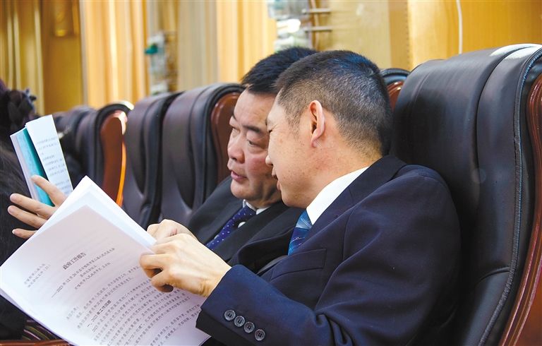 圖為參會前,市政協(xié)委員們在閱讀會議材料。