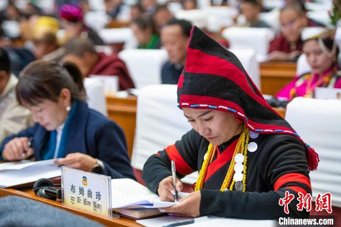 圖為西藏政協(xié)委員在開幕會現(xiàn)場。貢嘎來松 攝