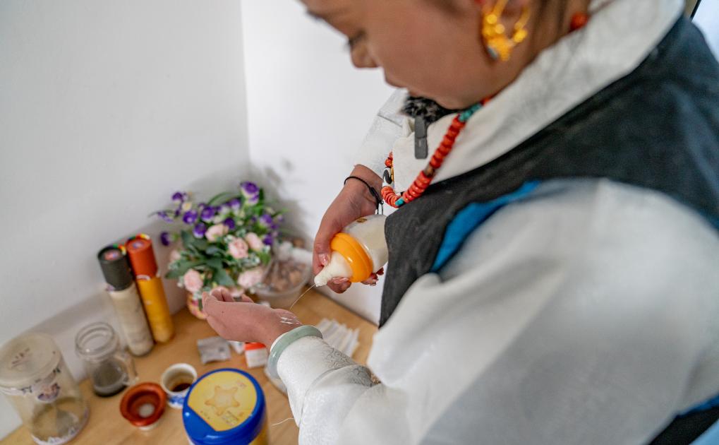 1月8日,愛心媽媽旦增卓瑪給孩子沖奶粉時(shí)試溫。新華社照片,拉薩,2024年1月9日 新華社發(fā)(丁增尼達(dá)攝)