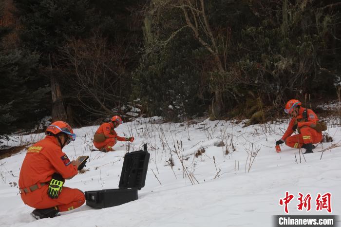 圖為森林消防隊員正在使用儀器進(jìn)行搜索。袁永斌 攝