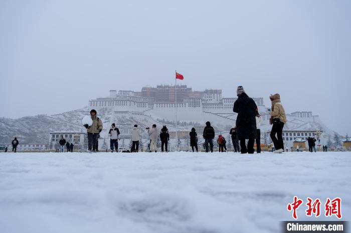 圖為1月18日上午,民眾在拉薩布達(dá)拉宮廣場(chǎng)賞雪。江飛波 攝