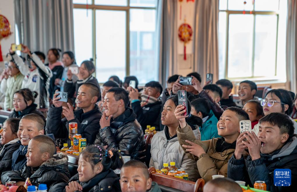 福利院小朋友們在觀看聯(lián)歡會表演。新華社記者 丁增尼達 攝