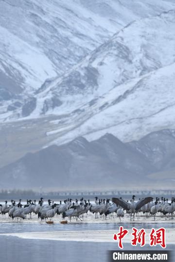 西藏拉薩:雪后黑頸鶴翩翩起舞