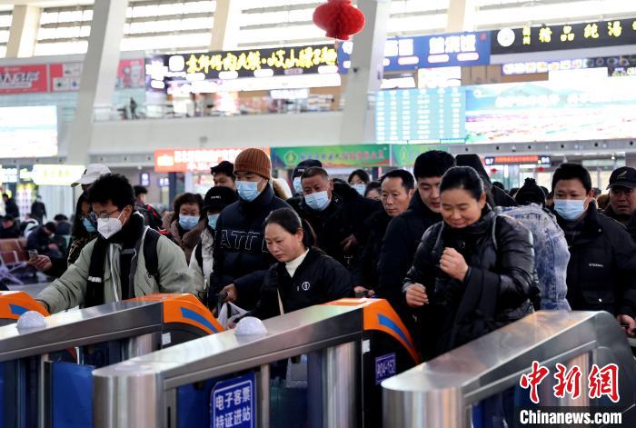 圖為1月26日,青海省西寧火車站,旅客正在檢票進站。祁增蓓 攝
