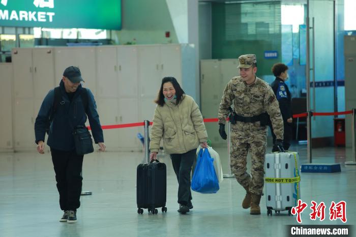 在車站內(nèi),還有一組風(fēng)景必不可少,那便是一抹流動的迷彩色。武警青??傟犖鲗幹ш爤?zhí)勤九中隊指導(dǎo)員楊峰告訴記者,春運期間,車站客流量大,“看到旅客有困難,我們也會主動去幫忙,以實際行動溫暖守護旅客歸鄉(xiāng)路?!?/p>