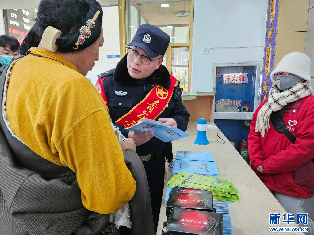 在進(jìn)出站口、站前小廣場、候車室等法制宣傳現(xiàn)場,那曲站民警通過開展法制宣傳活動,向旅客講解反詐、防盜等法律知識。同時,聯(lián)合車站客運人員對正確購買火車票的途徑、乘坐火車需要注意的事項等進(jìn)行講解,增強(qiáng)了群眾的法律意識。
