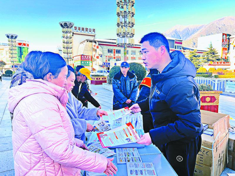 圖為人行林芝市分行工作人員在廈門廣場開展金融宣傳。記者 張猛 攝
