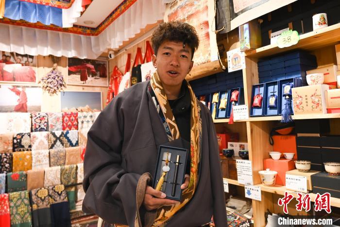 剛朝佛完的青科正和家人在店里挑選著文創(chuàng)產(chǎn)品,這位來(lái)自青海省果洛藏族自治州的年輕小伙,和家人來(lái)過(guò)拉薩很多次,但自駕來(lái)是首次。青科和哥哥挑選了很多文創(chuàng),其中有刻著藏文的鋼筆,“回去想送給我的老師”。