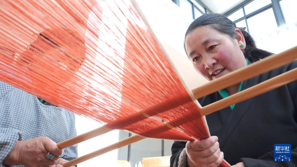西藏自治區(qū)日喀則市江孜縣商務局局長央吉介紹,新式氆氌紡織機能織造不同尺寸的產(chǎn)品,“新式氆氌”采用山羊絨、牦牛絨等原材料,質(zhì)地柔軟順滑,花樣種類繁多,迎合了國際市場需求,從而實現(xiàn)了對傳統(tǒng)氆氌的升級,“最重要的是提高了附加值,帶動了老百姓增收?!彼f。