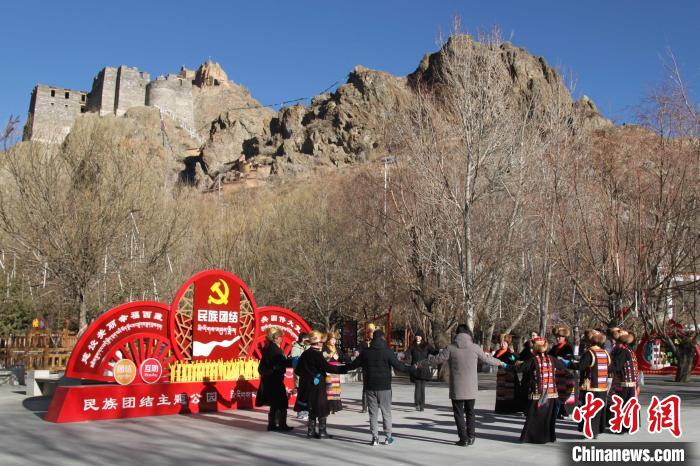 資料圖為援藏干部與民眾在瓊結(jié)民族團結(jié)主題公園跳鍋莊舞。曲杰 供圖
