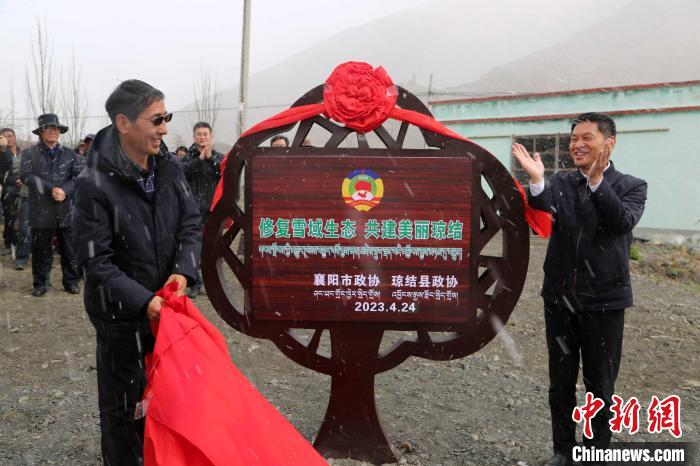 資料圖為襄陽、瓊結(jié)兩地政協(xié)在瓊結(jié)縣東嘎社區(qū)東嘎溝為民族團結(jié)友誼林揭牌。曲杰 供圖