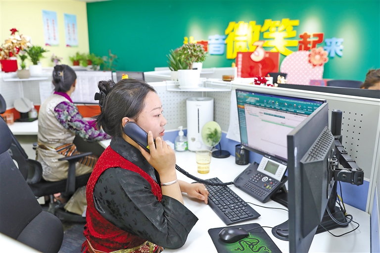 國網(wǎng)西藏電力有限公司營銷服務(wù)中心客服人員在接聽用戶電話。通訊員 旦增央卓 攝