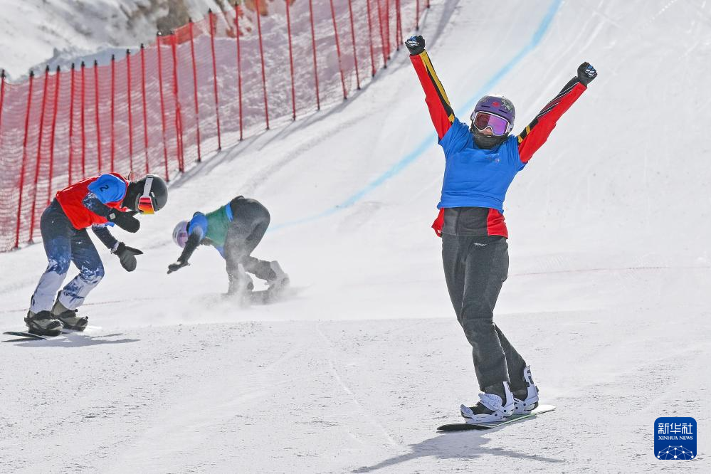 2月19日,在第十四屆全國冬季運(yùn)動會單板滑雪青年組女子障礙追逐比賽中,西藏隊選手擁青拉姆、湖北隊選手楊禮妍和遼寧隊選手馮賀分獲前三名。新華社記者 李志鵬 攝