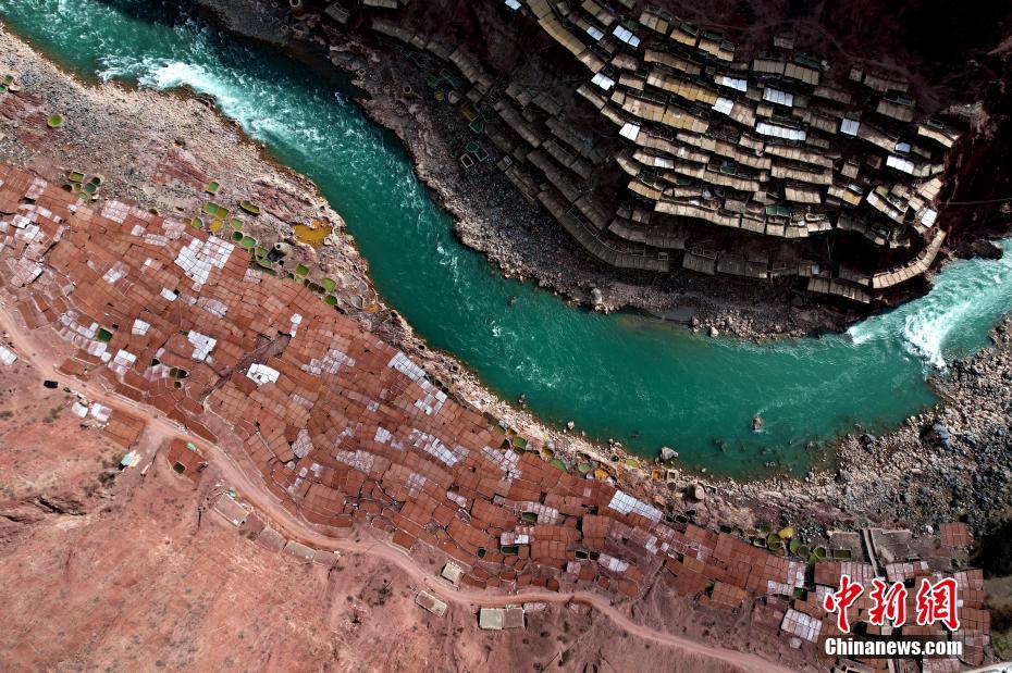 圖為2月20日,航拍西藏昌都芒康千年古鹽田。(無人機照片)中新社記者 李林 攝