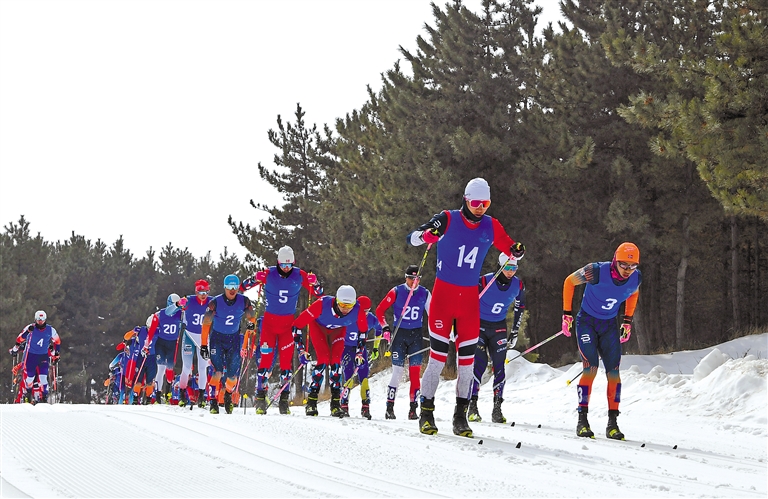 圖為公開組女子雙追逐(7.5公里傳統(tǒng)技術(shù)+7.5公里自由技術(shù))比賽現(xiàn)場(chǎng)。洛桑 索朗群培 攝