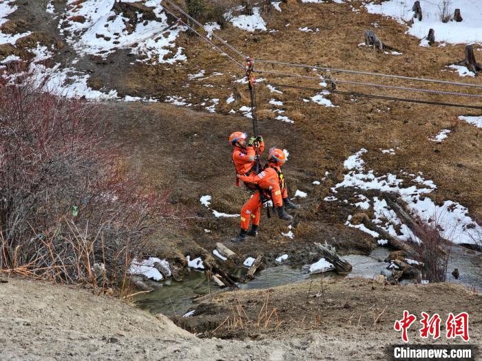 圖為拉練中開(kāi)展繩索救助應(yīng)用實(shí)戰(zhàn)化訓(xùn)練。西藏林芝市森林消防支隊(duì)供圖