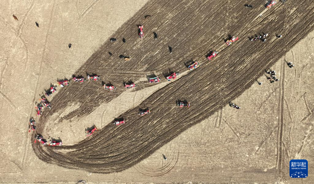 這是3月16日拍攝的西藏拉薩市林周縣強(qiáng)嘎鄉(xiāng)春耕儀式現(xiàn)場(chǎng)(無人機(jī)照片)。新華社記者 晉美多吉 攝