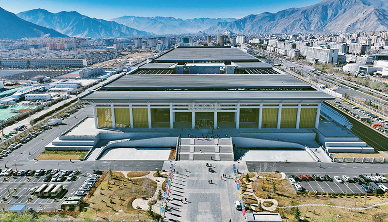 2023年12月15日,西藏大劇院開臺(tái)演出活動(dòng)舉行,西藏文化新地標(biāo)西藏大劇院正式啟用。圖為空中俯瞰西藏大劇院(無(wú)人機(jī)照片)。 新華社記者 晉美多吉/攝