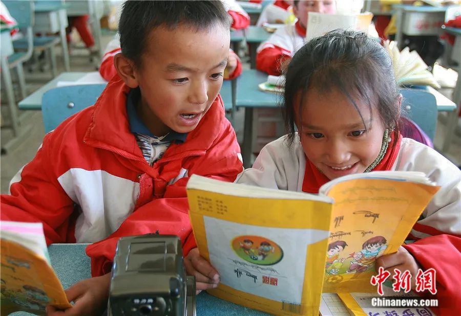 西藏日喀則市上海實驗學校的課堂上,孩子們在朗讀課文。張學軍 攝