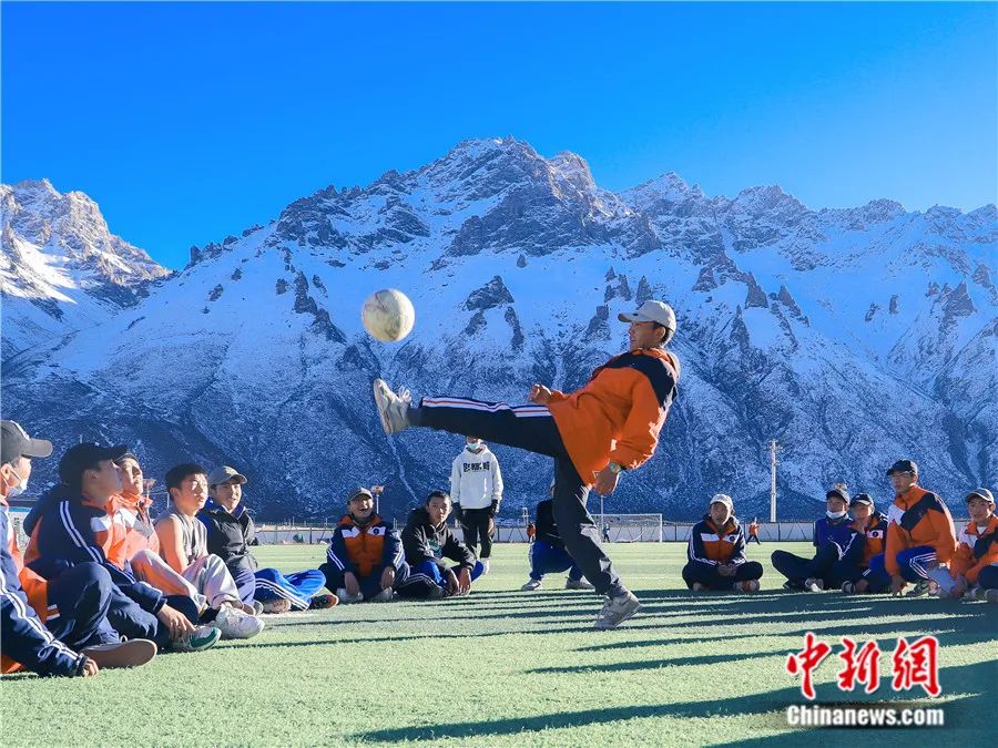 2022年11月25日,西藏那曲市嘉黎縣中學的高原球場上學生們在進行足球訓練。據(jù)了解,這座海拔4500米的高原球場是全校2500余名學生上體育課的地方,也是訓練足球的場地。色曲多吉 攝