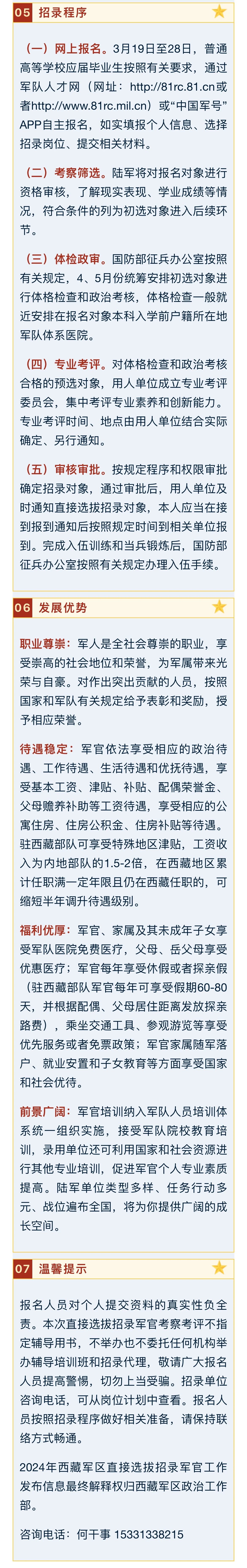 根據(jù)軍隊(duì)有關(guān)政策規(guī)定,按照全軍統(tǒng)一部署,現(xiàn)就2024年上半年西藏軍區(qū)直接選拔招錄軍官有關(guān)事項(xiàng)公告如下: