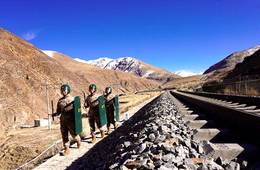 武警戰(zhàn)士在鐵路沿線(xiàn)巡邏。采訪(fǎng)對(duì)象提供