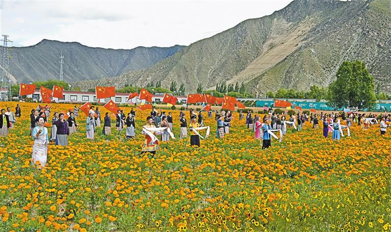 在新時(shí)代黨的治藏方略引領(lǐng)下,在全國(guó)人民大力支持下,西藏各族干部群眾團(tuán)結(jié)奮斗,各項(xiàng)事業(yè)取得全方位進(jìn)步、歷史性成就。西藏社會(huì)大局持續(xù)穩(wěn)定向好、經(jīng)濟(jì)建設(shè)全面快速發(fā)展、人民生活水平不斷提高、民族和睦宗教和順、文化事業(yè)繁榮進(jìn)步、生態(tài)安全屏障日益堅(jiān)實(shí)、邊疆鞏固邊境安全、黨的建設(shè)全面加強(qiáng),西藏各族人民與全國(guó)人民一道迎來(lái)了從站起來(lái)、富起來(lái)到強(qiáng)起來(lái)的偉大飛躍,踏上了全面建設(shè)社會(huì)主義現(xiàn)代化國(guó)家新征程。