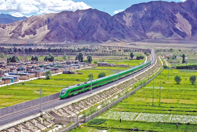 當(dāng)前,全區(qū)公路通車總里程達(dá)到12.14萬(wàn)公里,鐵路通車?yán)锍?359公里,國(guó)際國(guó)內(nèi)航線169條……西藏交通從無(wú)到有、從通達(dá)到通暢、從行程到旅程,從牛運(yùn)馬馱的原始交通發(fā)展到公路、航空、鐵路的綜合立體現(xiàn)代交通運(yùn)輸體系?!皟陕贰本裨谛聲r(shí)代更加發(fā)揚(yáng)光大、凝聚人心!