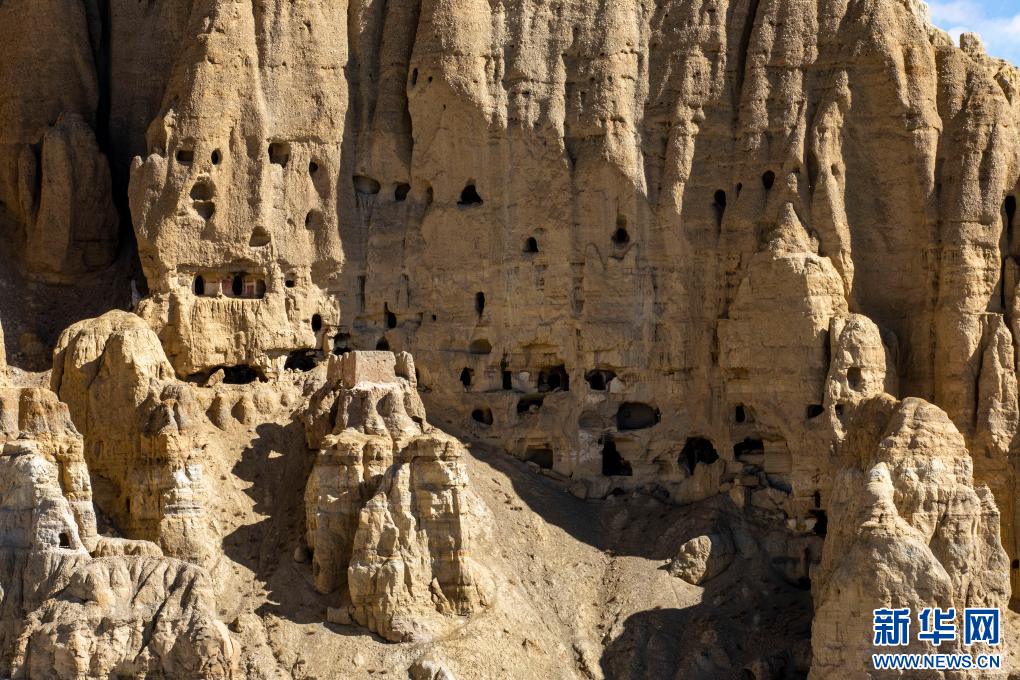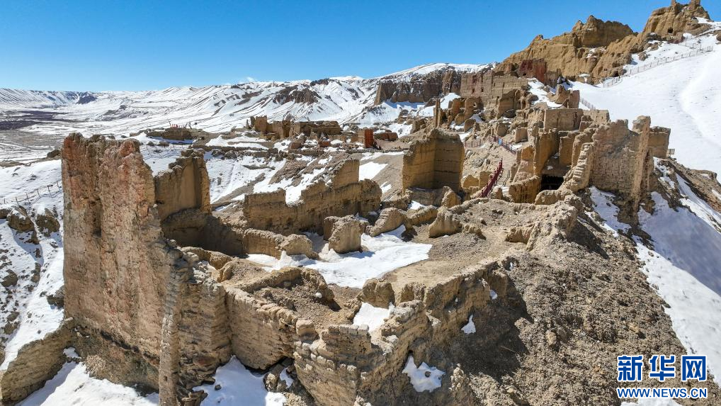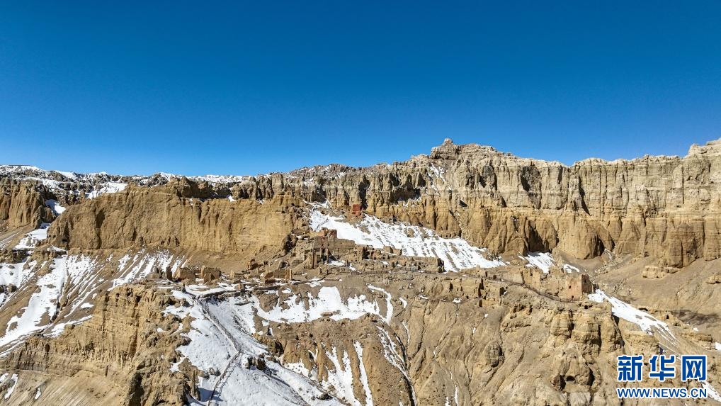 達(dá)巴遺址位于西藏阿里地區(qū)札達(dá)縣境內(nèi),其主要建筑分布在兩座山脊之上,整個(gè)遺址共有洞穴200余處,且有獨(dú)立的碉樓、寺廟建筑遺跡、居民窯洞等建筑,在白雪的映襯下,顯得格外雄渾而神秘。