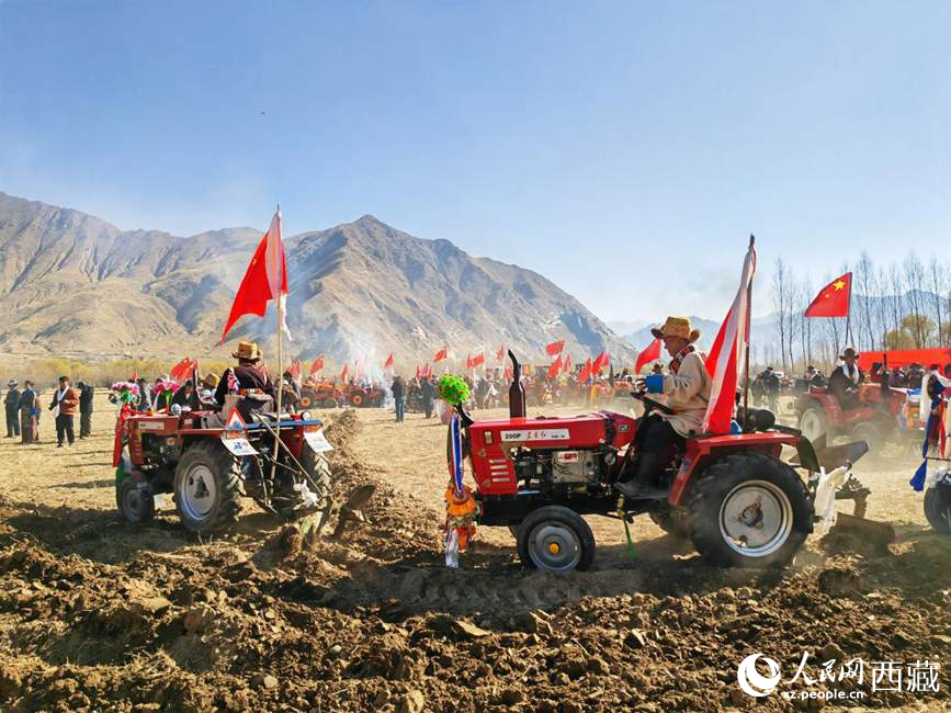 西藏農(nóng)業(yè)發(fā)展已實現(xiàn)機械化。人民網(wǎng) 李海霞攝