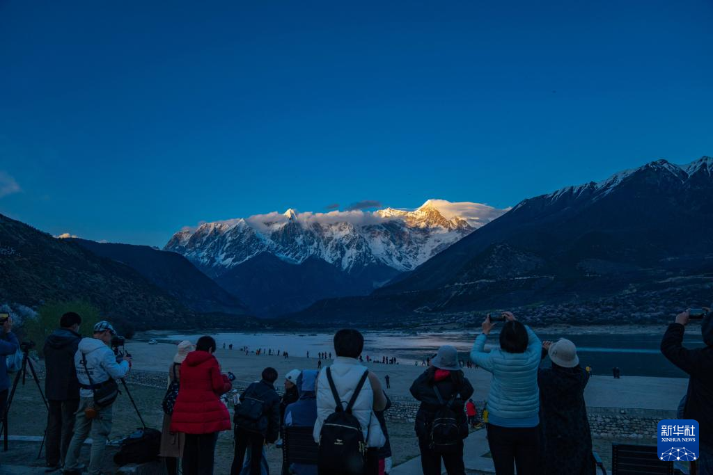 西藏林芝市米林市索松村是欣賞南迦巴瓦峰景觀的最佳位置之一。這里面向南迦巴瓦峰,腳下是蜿蜒的雅魯藏布江。林芝市第二十一屆桃花旅游文化節(jié)期間,雅魯藏布江邊的桃花次第盛開,與雪山、大江相襯,獨特的景色吸引著各地游客慕名而來,共赴一場“桃花之約”。