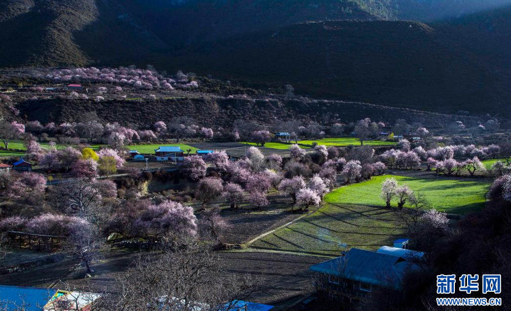 圖為西藏波密縣扎木鎮(zhèn)崗村內盛放的桃花。新華網發(fā) 阿旺仁青 攝