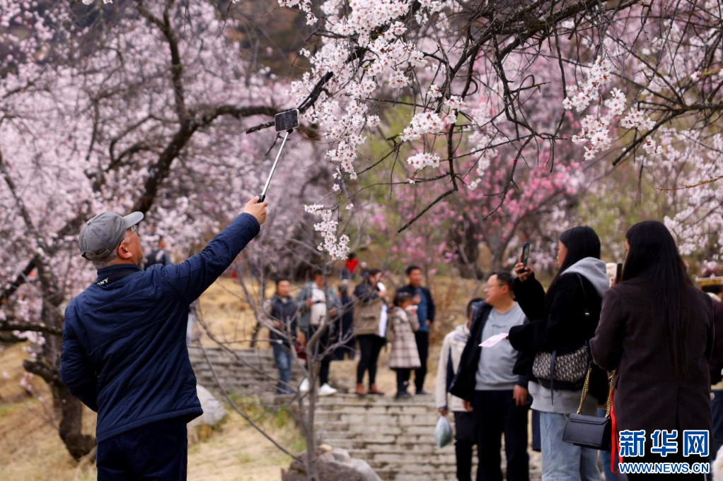 3月31日,游客在林芝市巴宜區(qū)嘎拉村拍照留念。新華網(wǎng)發(fā) 李騰 攝