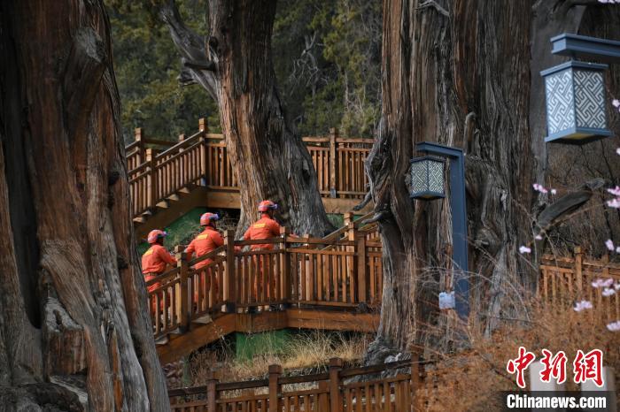 圖為消防員守護(hù)千年柏樹(shù)。西繞拉翁 攝