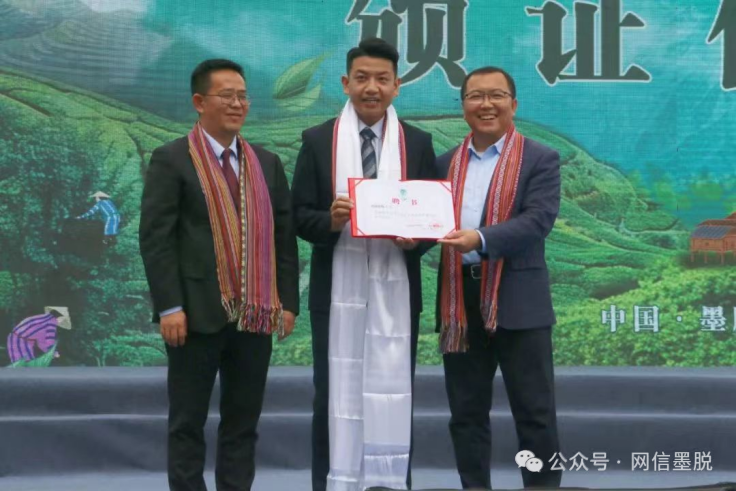 伴隨著春風(fēng)中浸染的裊裊茶香,開幕式上的一段視頻吸引了觀眾們的注意,視頻中丹臻群佩在央視主持人大賽的舞臺上向全國人民展示了墨脫通車十年以來的壯美巨變,講述了茶葉為墨脫人民的生活帶來的嶄新面貌,他的傾情推介帶領(lǐng)著觀眾再次感受了墨脫的極致美景,體會了新時代墨脫人民欣欣向榮的美好生活。在現(xiàn)場,林芝市委常委、墨脫縣委書記符永波為丹臻群佩頒發(fā)“中國·墨脫文化旅游形象大使”證書。隨后,符永波宣布,2024年墨脫縣首屆茶文化旅游季正式開幕!