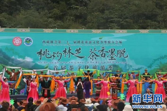 林芝第二十一屆桃花旅游文化節(jié)墨脫分會場暨墨脫縣首屆茶文化旅游季開幕式現(xiàn)場(4月5日攝)。新華社發(fā)