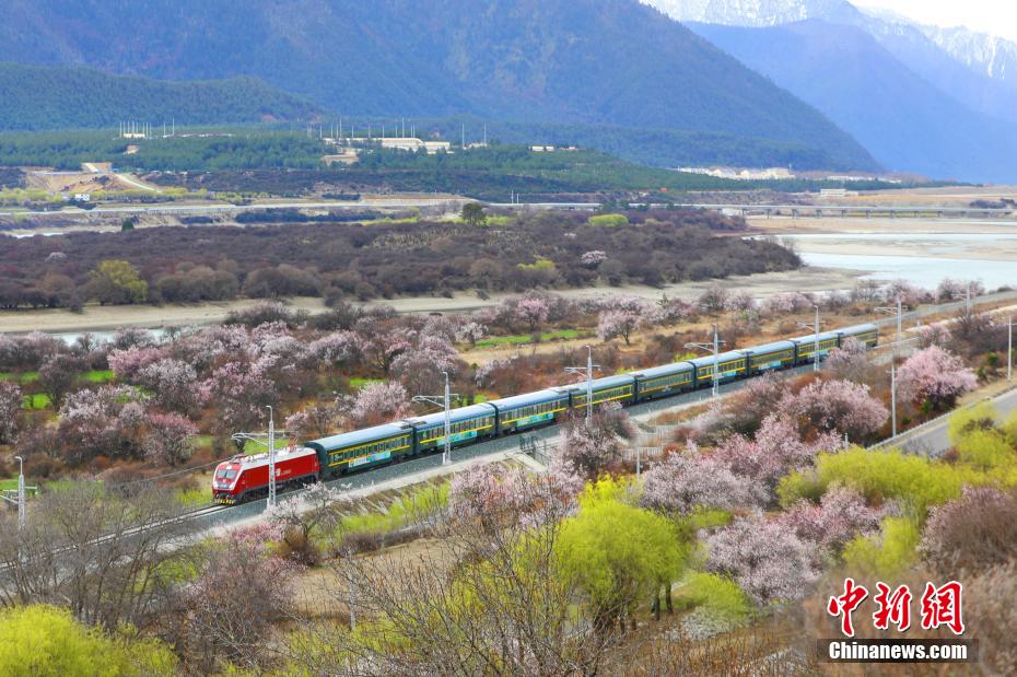 被譽(yù)為新“天路”的拉林鐵路,是中國(guó)首條高原電氣化鐵路,于2021年6月25日開通運(yùn)營(yíng),結(jié)束了西藏東南地區(qū)不通鐵路的歷史。圖為拉林鐵路沿線桃花盛開,與飛馳而過的動(dòng)車構(gòu)成別樣風(fēng)景圖。馬生明 攝