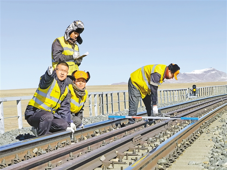 在他的帶領(lǐng)下,安多車間逐步形成了“動(dòng)態(tài)與靜態(tài)檢測(cè)結(jié)合分析、線路設(shè)備精準(zhǔn)維修、道岔設(shè)備精細(xì)維修、大修與維修結(jié)合開(kāi)展”的檢修思路。這種新思路的推廣應(yīng)用,成功地解決了凍土路基變化導(dǎo)致線路設(shè)備質(zhì)量無(wú)法有效提高的難題,有效地保障了青藏鐵路行車安全。車間管內(nèi)線路設(shè)備質(zhì)量有了明顯提升,一線作業(yè)生產(chǎn)效率也有了顯著提高。