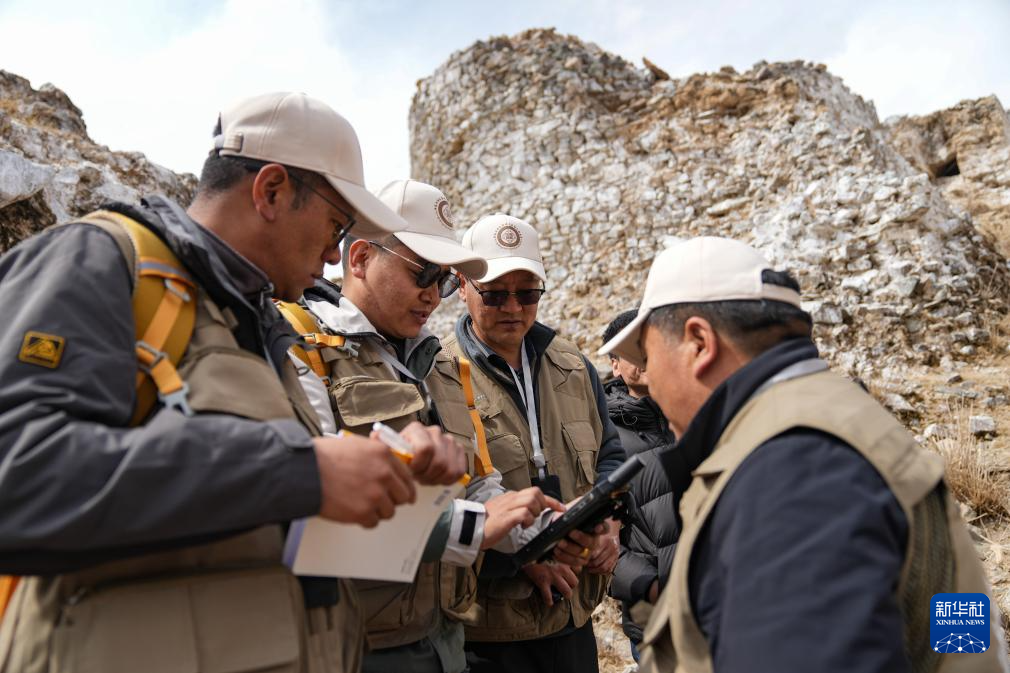 4月11日,普查人員在曲果崗塔群遺址現(xiàn)場(chǎng)開(kāi)展數(shù)據(jù)采集。新華社記者 晉美多吉 攝
