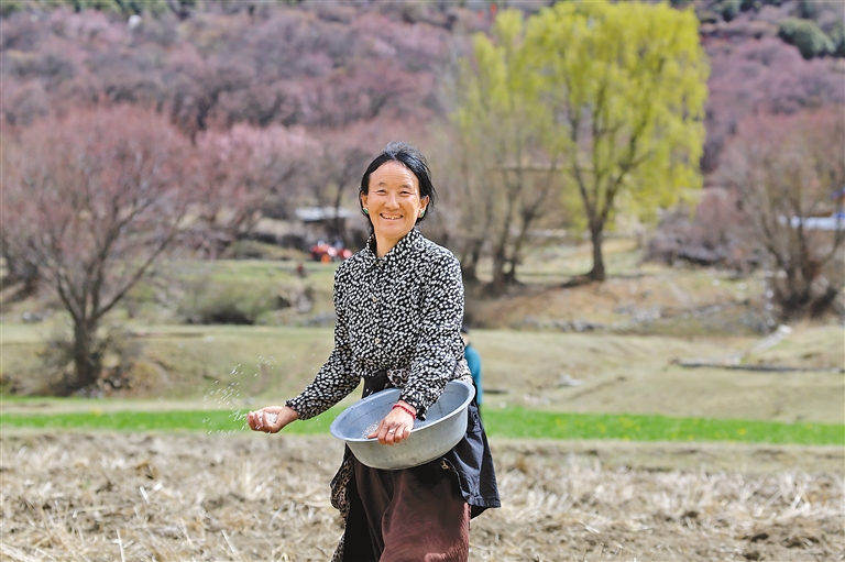 下尼屋的田壟上,35歲的扎西旺姆正在和相熟的村民一起干農(nóng)活,她是從波密縣八蓋鄉(xiāng)嫁到這里的,已經(jīng)在尼屋生活了7年。“這里和八蓋一樣,都以農(nóng)耕為主,氣候也差不多,人也很熱情,我和鄰居們經(jīng)常一起挖蟲草、采松茸、干農(nóng)活,感覺很幸福!”