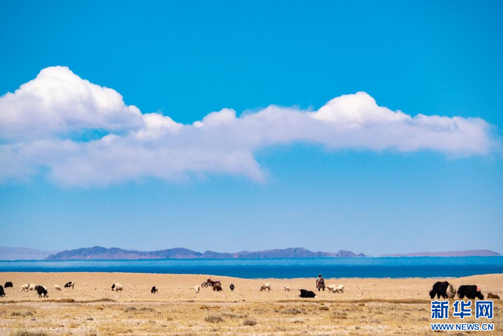4月14日,在色林錯國家級自然保護區(qū)拍攝的放牧人。新華網(wǎng) 旦增努布 攝