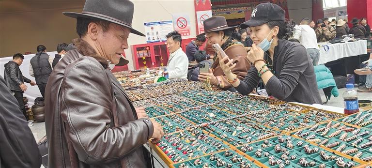 記者在展廳看到,參展商家攤位分布有序,前來購買各種珠寶、藝術(shù)品的顧客絡(luò)繹不絕?;顒蝇F(xiàn)場,匯聚了來自全國各地的珠寶商、藝術(shù)家、收藏家及投資者。博覽會期間,主辦方舉辦了珠寶、藝術(shù)品鑒定評估等商貿(mào)活動,以及珠寶藝術(shù)品講座、研討會等文化交流活動,為與會者提供了一個全面了解西藏珠寶及藝術(shù)品的機(jī)會,同時也為珠寶商、藝術(shù)家和投資者搭建了一個交流與合作的平臺。文/圖 記者 張雪芳