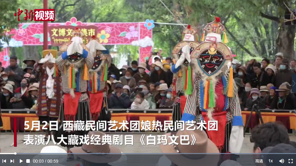 5月2日,西藏民間藝術(shù)團(tuán)娘熱民間藝術(shù)團(tuán)表演八大藏戲經(jīng)典劇目《白瑪文巴》?!拔逡弧奔倨?,“經(jīng)典劇目進(jìn)景區(qū) 特色演出進(jìn)劇院”惠民文藝演出在羅布林卡進(jìn)行,吸引市民游客爭相觀看。藏戲集說唱、表演、歌舞、文學(xué)于一體,有著600多年歷史,被譽(yù)為藏文化的“活化石”。(李林 制作 劉鵬)