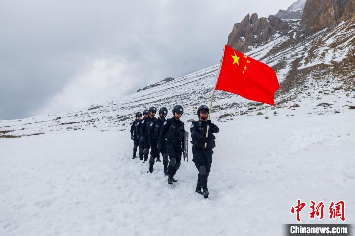圖為貢當(dāng)邊境派出所民警正在進行巡邏踏查。日喀則邊境管理支隊供圖