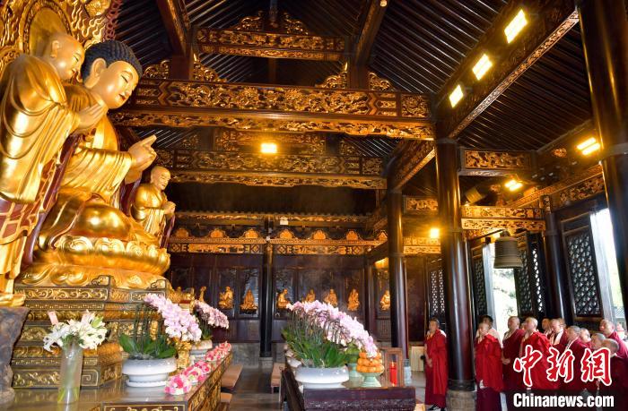 參觀結(jié)束后,少年活佛們返回主殿,在釋迦牟尼佛像前敬獻哈達,同寬嚴法師一起誦經(jīng),共同祈愿國泰民安、世界和平。