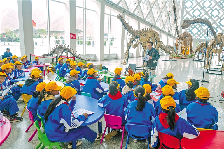 5月18日,在西藏自然科學(xué)博物館內(nèi),工作人員向拉薩市第三小學(xué)的學(xué)生講述西藏的自然歷史。記者 丹增群培 攝