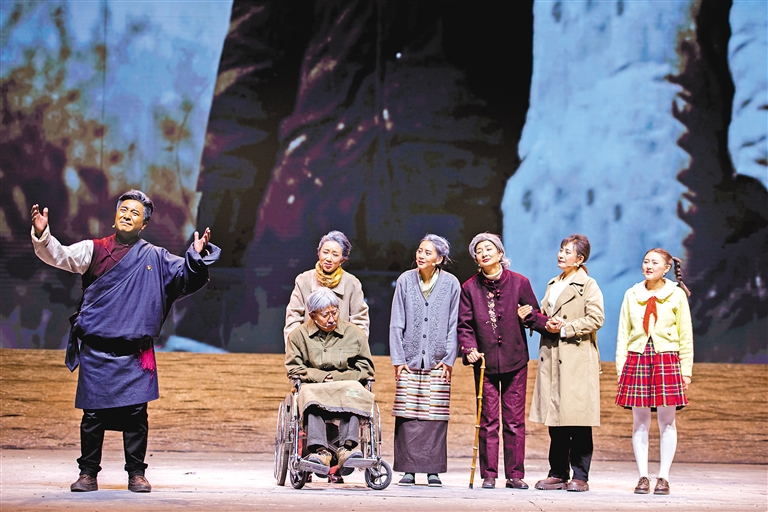 話劇《老西藏》以守墓人作為故事的主線,回望西藏和平解放以來(lái),一代代進(jìn)藏干部積極響應(yīng)黨和國(guó)家號(hào)召,投身西藏解放改革和建設(shè)事業(yè),用生命和汗水在西藏的土地上書(shū)寫(xiě)老西藏精神的偉大事跡,用一個(gè)個(gè)鮮活、有血有肉的人物,謳歌“老西藏”們舍小家、顧大家的無(wú)私奉獻(xiàn)精神。