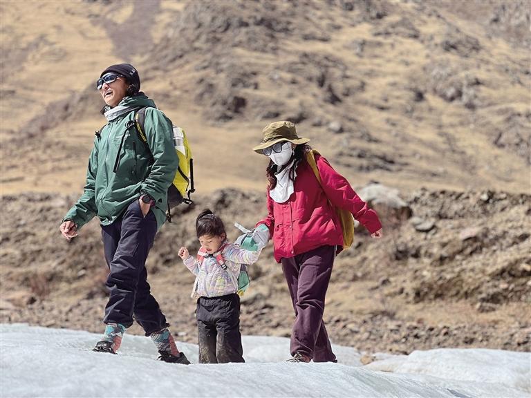1小時(shí)46分后,記者終于登頂南山。在山巔,“徒步搭子”們相互拍照留念,慶祝登頂?shù)南矏?。市民白瑪曲珍說(shuō):“我從去年夏天開(kāi)始帶著女兒徒步。走走停停中,發(fā)現(xiàn)孩子既能接觸大自然又能強(qiáng)身健體,同時(shí)戶外活動(dòng)還讓孩子更加堅(jiān)韌、開(kāi)朗,之后便一發(fā)不可收拾。我和女兒都很享受徒步的時(shí)光。”